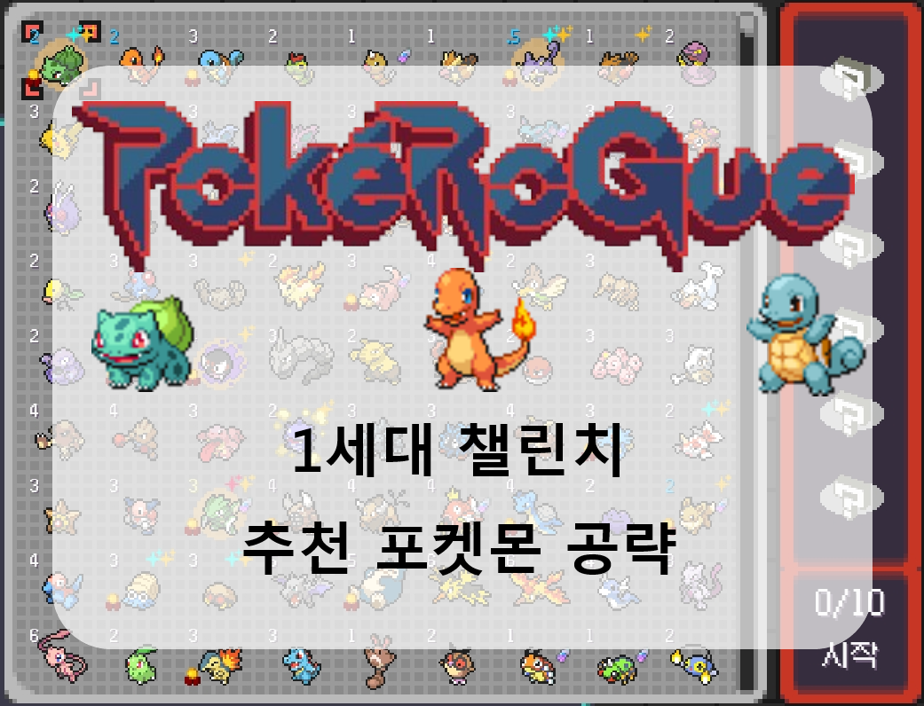 오늘은 포켓로그 1세대 챌린지에서 사용할 수 있는 추천할 수 있는 포켓몬에 대해서 소개해보도록 하겠습니다.