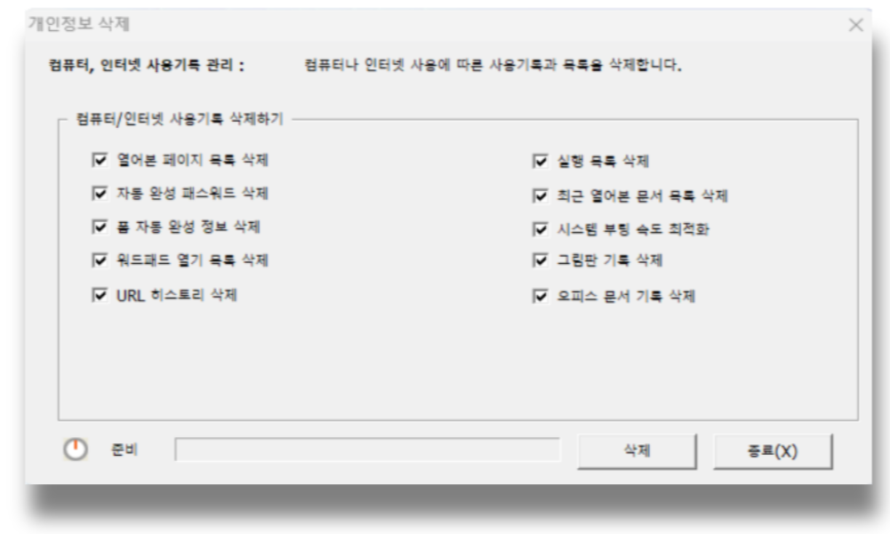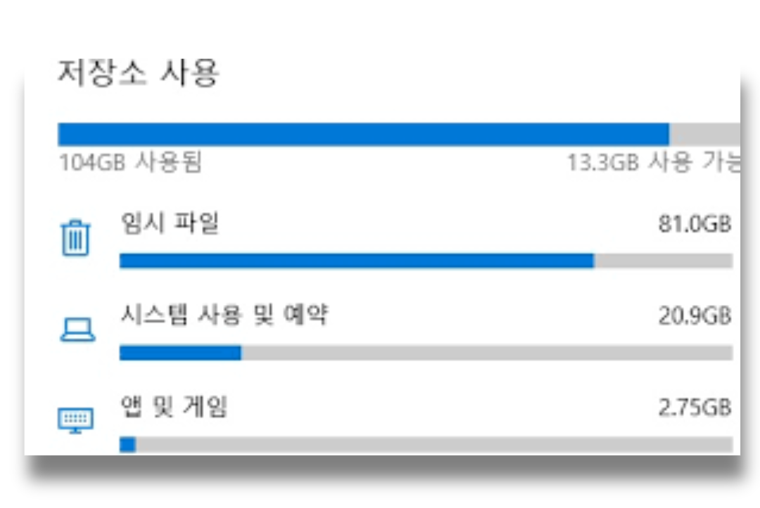 이렇게 컴퓨터 일상적으로 쌓일 수 밖에 없는 파일인 임시파일, 캐시, 쿠키, 로그 파일 등을 주기적으로 정리해야 최적화할 수 있는데